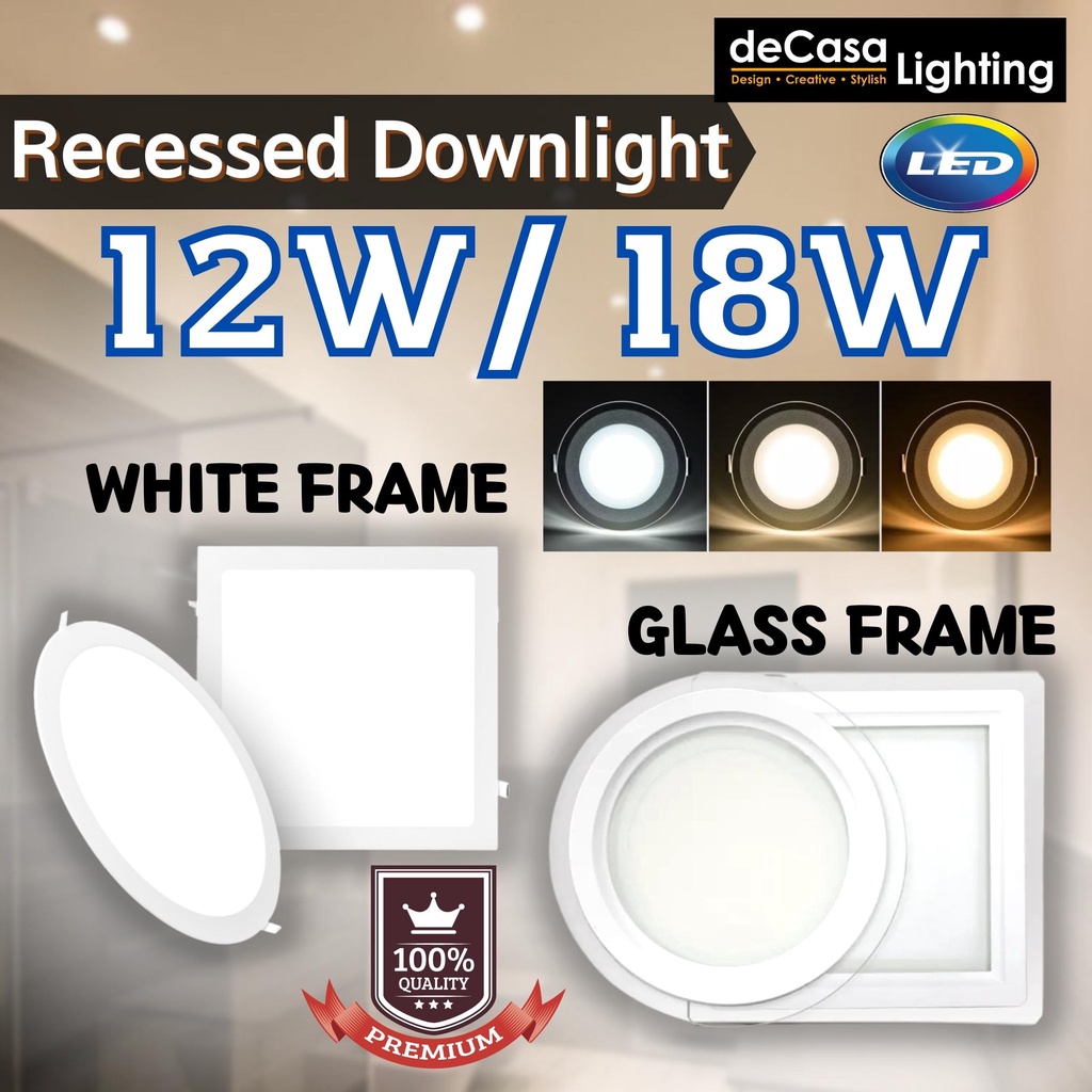 12w 18w Led Recessed Downlight Panel Light House Lightings Lampu Led Plaster Siling Modi Shopee Malaysia
